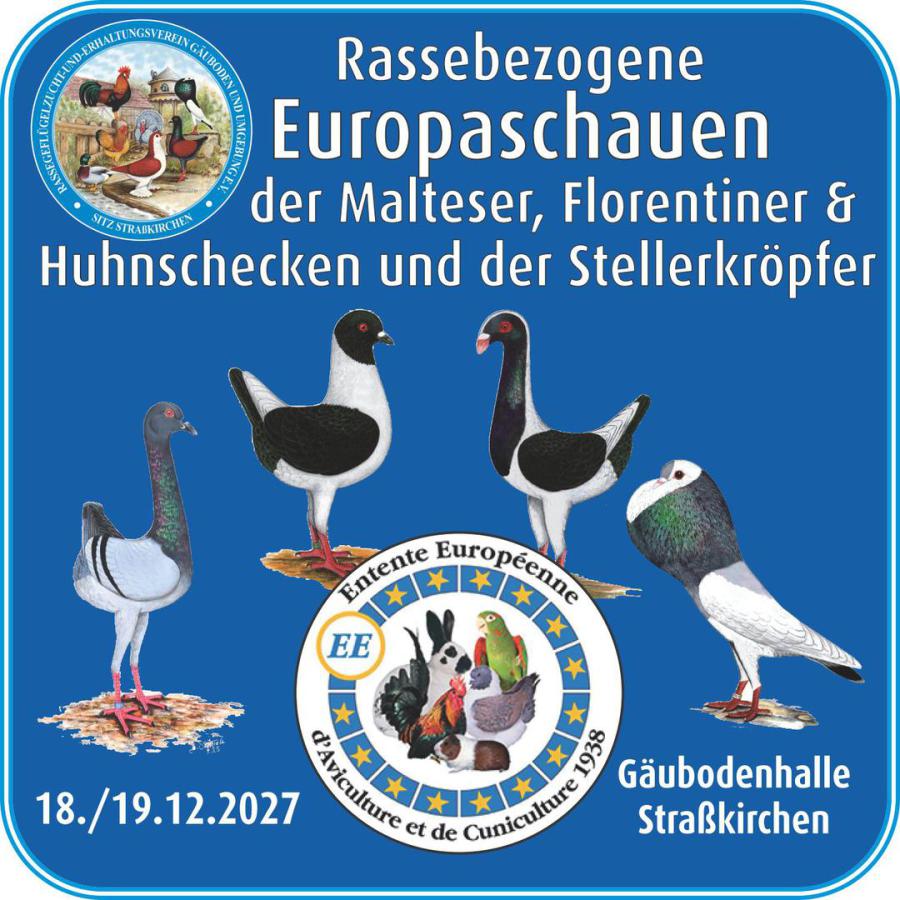 Rassebezogene Europaschau der Großen Huhntauben u. der Stellerkröpfer 18. - 19. Dezember 2027 – in Straßkirchen