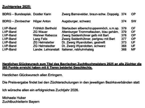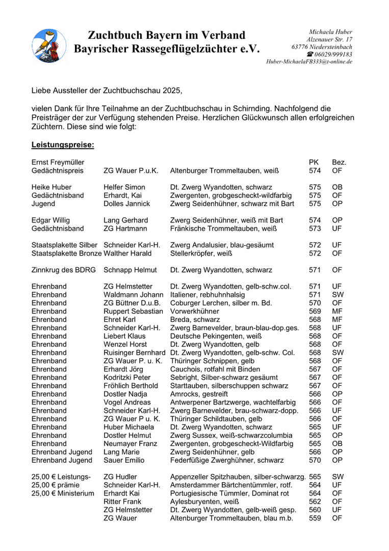 Leistungs- u. Zuchtpreise der Bayerischen Zuchtbuchschau Schirnding 2025